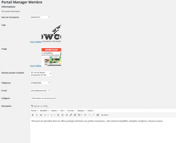 Si vous voulez modifier des éléments, mettre en page … c’est TROP TARD ! Non c’est pas vrai, vous pouvez le faire autant de fois que vous le désirez depuis le plugin « portail manager membre Â» et les informations seront répercutées automatiquement.