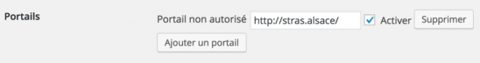 Portails : il vous suffira d’ajouter « http://stras.alsace/ Â» et de cliquer sur la case « activer Â»