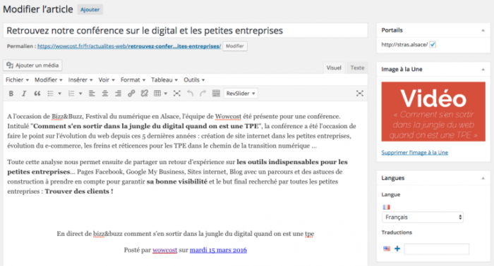 Il vous suffira désormais, à chaque fois que vous publiez un article, de cocher cette case si vous souhaitez que cet article soit publié sur stras.alsace … c’est simple et automatique !